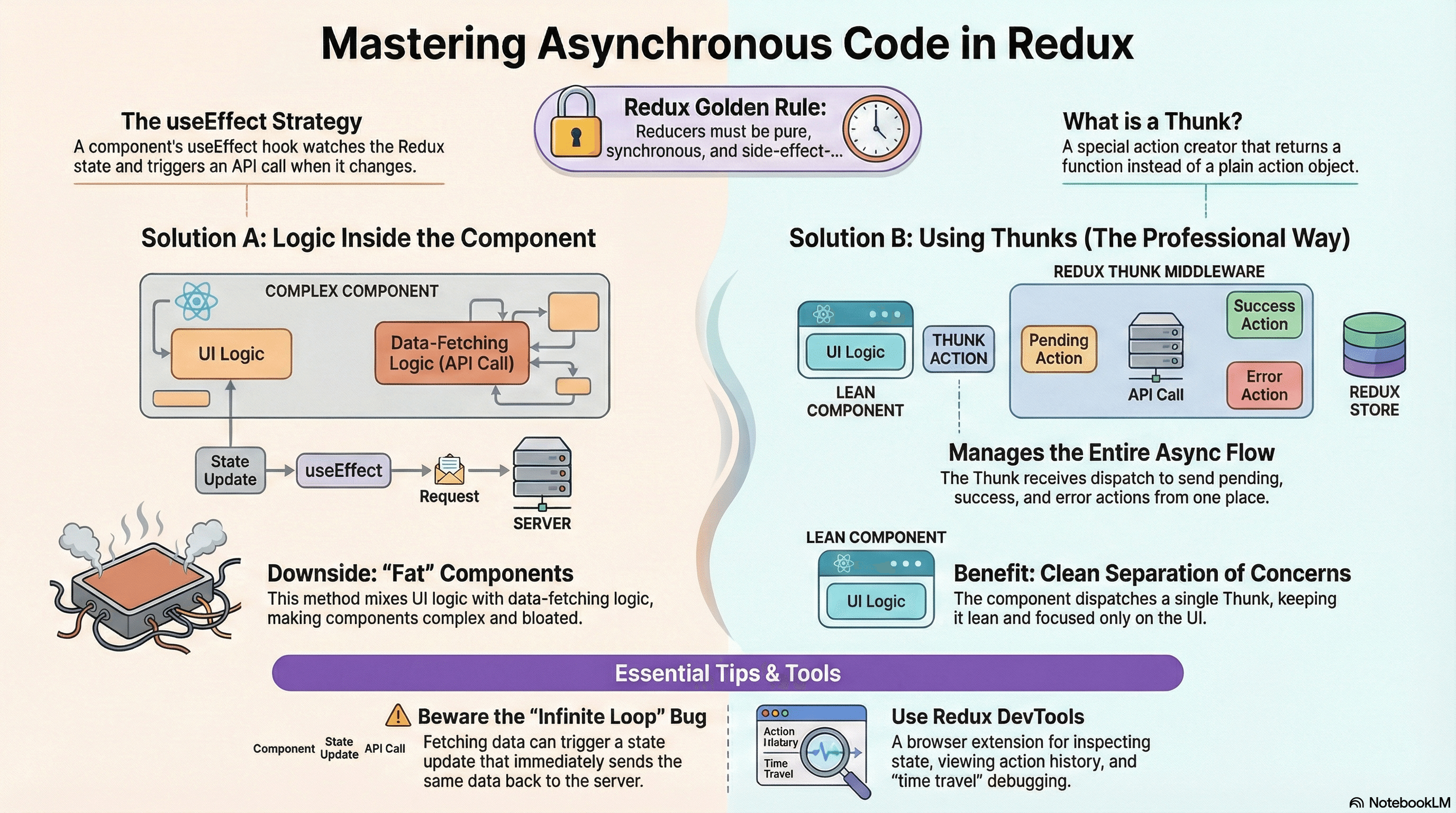 Vanilla Reduxで「store/reducer/dispatch/subscribe」を体験し、Reactでは<Provider>で供給してuseSelectorで読む・useDispatchで変える流れを押さえつつ、stateを直接変更しない(Immutability)重要性と落とし穴を学ぶ。