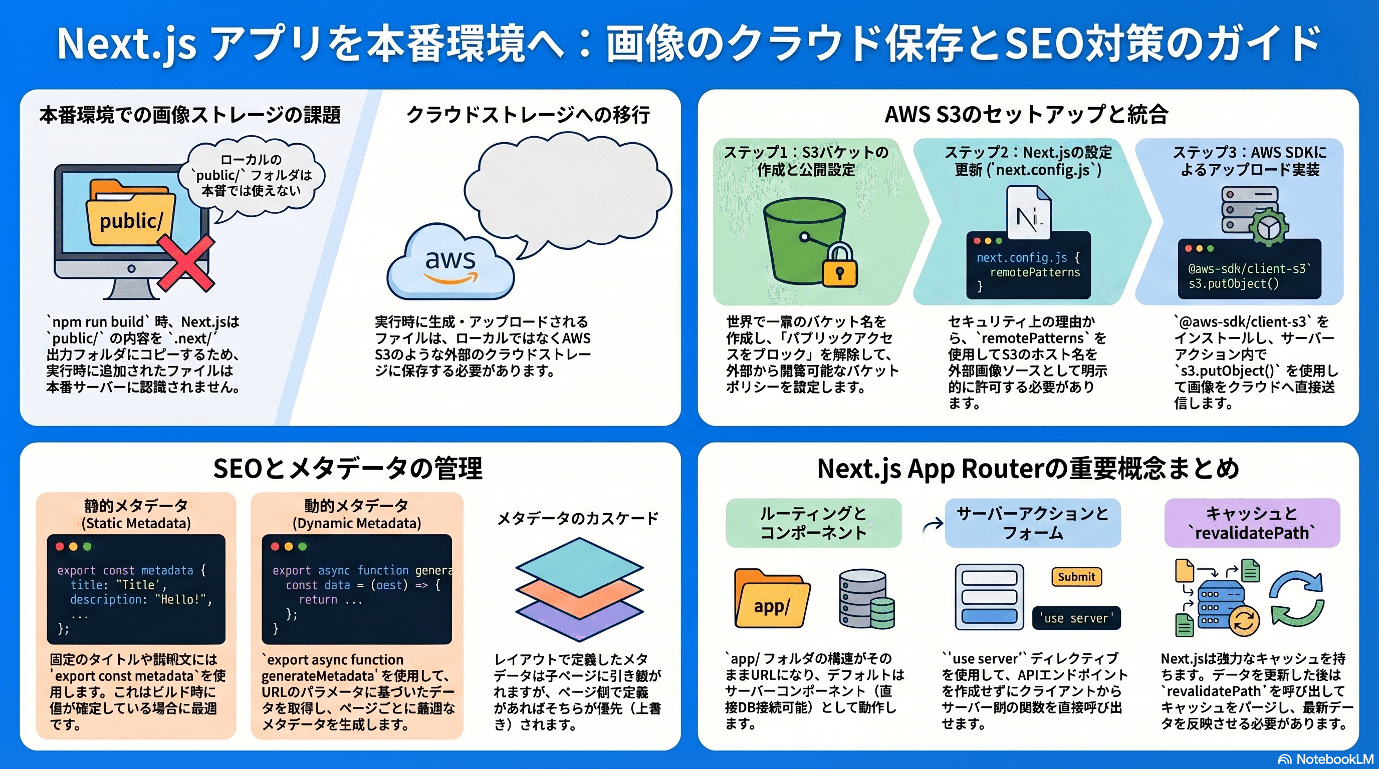 React - The Complete Guide 2025 (incl. Next.js, Redux): Next.jsアプリケーションの本番対応:本番環境での画像管理問題を解決し、SEO対応のメタデータを追加し、App Routerの全体像を振り返る (第26-3/40課)